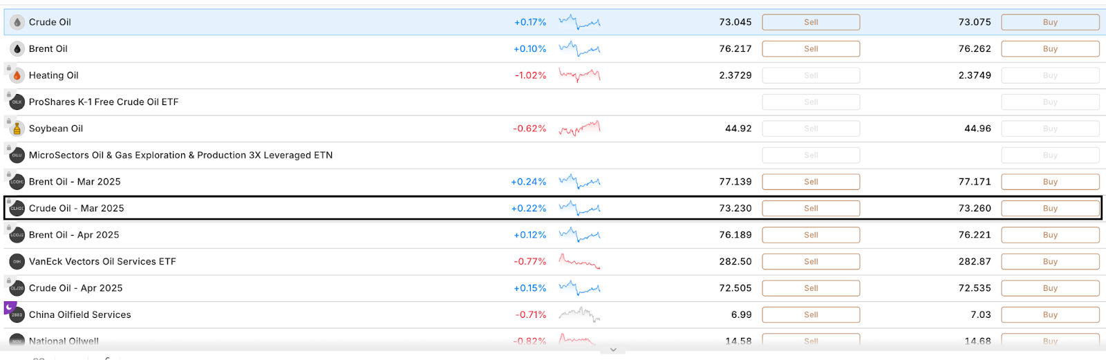 Futures können jedoch auch in Form von CFDs als Derivate gehandelt werden (siehe unten), was die Art ist, wie Sie sie über unsere Plattform handeln werden. Unten sehen Sie einen Crude Oil Future CFD mit März-Verfall, der aus einer Marktsuche resultiert.