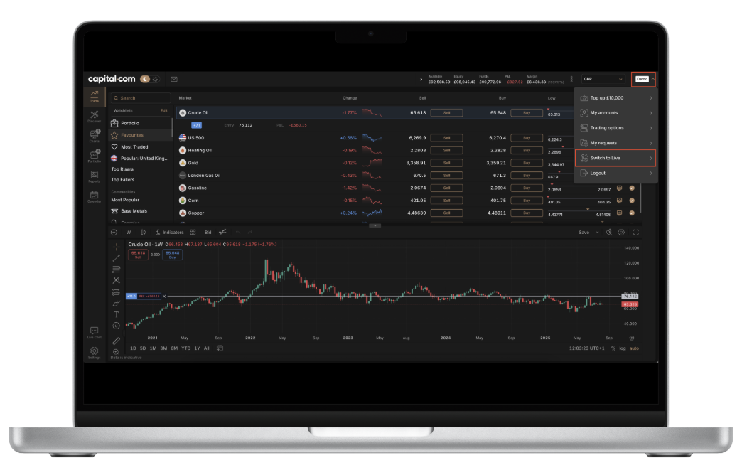 Vous pouvez facilement passer de votre compte démo à votre compte réel à tout moment.