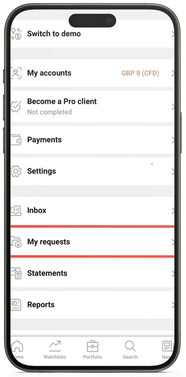 Чтобы загрузить документы в нашем приложении, перейдите в Аккаунт Мои запросы