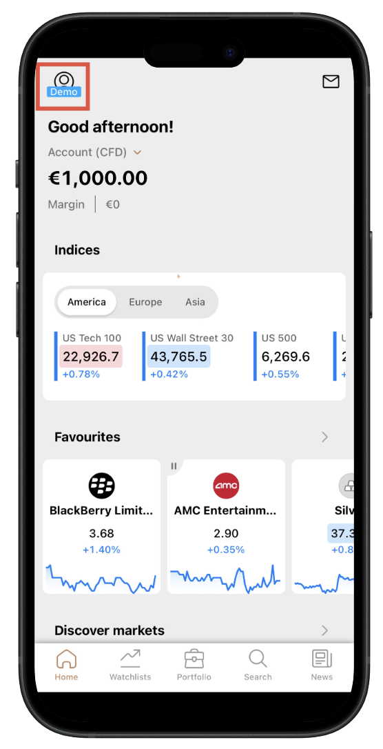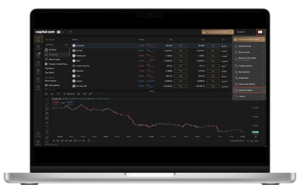 您可以隨時輕鬆在模擬帳戶和真實帳戶之間切換。